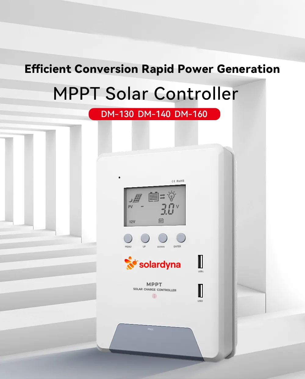 The 30A‑60A MPPT DM Series Solar Charge Controller delivers high-efficiency, reliable solar energy management for off-grid applications. Designed for B2B clients, it features automatic system voltage detection, wide battery compatibility, smart protections, and USB output, making it ideal for residential, commercial, and industrial solar projects.