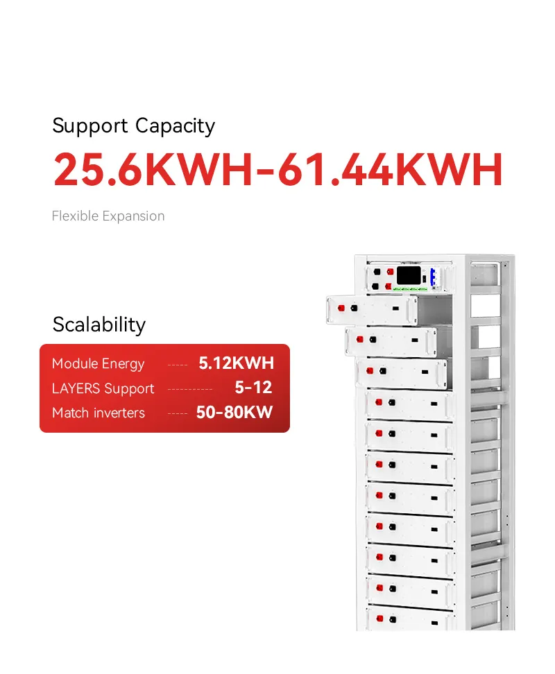 With scalable capacity from 25.6kWh to 61.44kWh, it enables flexible system design while maintaining high safety standards, intelligent management, and long cycle life.